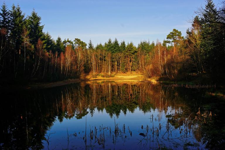 Keywords: forest trees mood lake water mirroring colorful incidence of light january nature landscape sky forests road aesthetic winter winter sun conifers