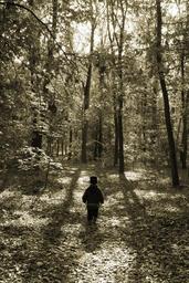 Keywords: forest trees nature kid child small child lose oneself party fear mood serenity forest road