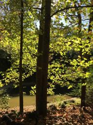 Keywords: forest trees sunshine day green nature summer lake tranquil