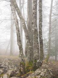 Keywords: forest trees tree trunks book foggy haunting mystical beech wood weather book creux du van swiss jura noiraigue