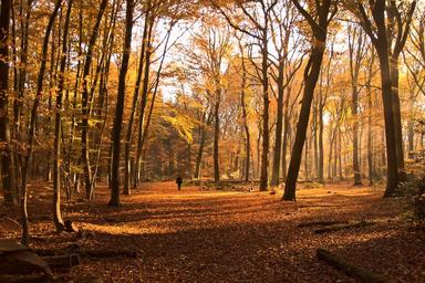 Keywords: forest walkers wanderer fog sunlight autumn autumn mood nature trees cold mystical mood sunbeam light beam landscape colourless hoarfrost dawn