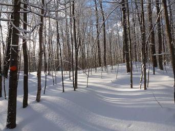 Keywords: forest winter snow shadows trees white trail untouched haliburton ontario canada