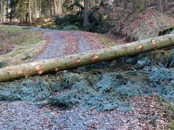 Keywords: forest work wood casework road blockade blocked obstacle log tree overturned forest damage storm storm damage