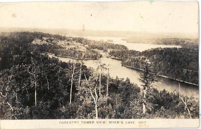 | Keywords: forestry tower forestrytower ranger tower rangertower myer's cave myerscave ontario canada north frontenac northfrontenac outdoor photo border serene This is a view, looking north-west from the forestry tower at Myer's Cave, Ontario, Canada. c1940 This is a view, looking north-west from the forestry tower at Myer's Cave, Ontario, Canada. c1940 |