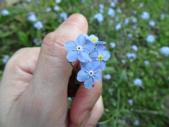 Keywords: forget-me-not flowers blue hand fingers