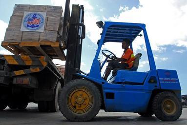 | Keywords: Forklift in Timor-Leste.jpg A East Timor pier worker offloads a Project Handclasp pallet in support of the Military Sealift Command hospital ship USNS Mercy ™s T-AH 19 visit to Timor-Leste in support of Pacific Partnership 2010 PP10 http //www c7f navy mil/imagery/galleries/monthly/2010/08-August/slides/100811-N-4044H-030 htm 2010-08-15 Eddie Harrison U S Navy PD-USGov-Military-Navy Blue land vehicles Side views of land vehicles Forklift trucks Project Handclasp United States Navy Ports and harbours in East Timor |