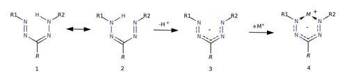 | Keywords: Formazan.Tautomerism.svg en Formazan tautomerism deprotonation and chelation ru Фо мазаны таутоме ия деп отони ование и хелати ование uk Фо мазани таутоме ия деп отонування та хелатування own Kurgus 2011-06-26 Cc-zero Formazans Tautomerism Chelating agents |