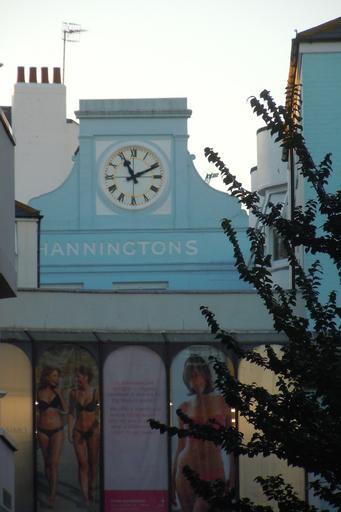 Keywords: Former Hanningtons Department Store, North Street, Brighton (October 2014) (Clock and Bridge).JPG Former Hanningtons Department Store East Street/Market Street/North Street Brighton City of Brighton and Hove East Sussex Founded in 1808 by Smith Hannington Continued as a department store until 2001 http //www heritagegateway org uk/Gateway/Results_Single aspx uid 480663 resourceID 5 Listed at Grade II by English Heritage IoE Code 480663 This shows part of the 1989 bridge over Market Street the distinctive clock above it and the well-known pale blue paint of this part of the façade own 2014-10-04 The Voice of Hassocks Hanningtons Brighton Cc-zero |