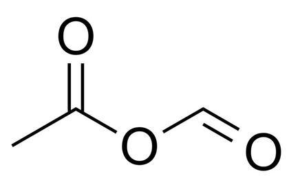 Keywords: Formic acetic anhydride skeletal.svg Chemical structure of formic acetic anhydride Own 21 38 6 January 2011 UTC Ed Edgar181 Carboxylic anhydrides Formate esters Acetate esters