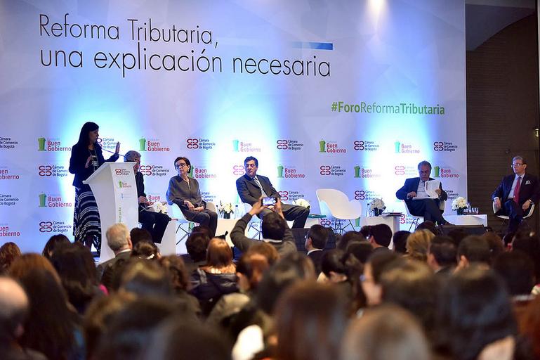 | Keywords: La difícil coyuntura económica generada por la caída en los precios del petróleo y la caída de la inversión, entre otros factores, llevó a la necesidad de plantear una reforma tributaria estructural para aumentar el recaudo. Para profundizar y debatir sobre el proyecto presentado por el Gobierno Nacional ante el Congreso de la República, la Fundación Buen Gobierno y la Cámara de Comercio de Bogotá adelantaron este foro con la presencia del Ministro de Hacienda y el director de la DIAN. Expertos tributaristas y representantes de gremios ante más de mil asistentes, debatieron el tema y dieron luces sobre la conveniencia de la reforma. /Crédito CCB. cámara de comercio bogotá |