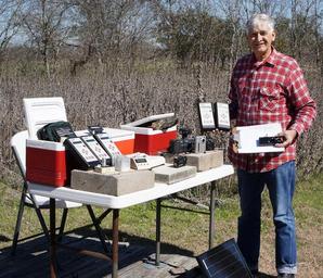| Keywords: Forrest M. Mims III on the 25th anniversary of his atmospheric measurements (1990 to 2016).JPG en The various sun photometers radiometers and cameras on the table are used every day at solar noon when the sun is not blocked by clouds See Wikimedia and www forrestmims org for 25-year charts of total ozone total water vapor and optical depth haze Mims' original LED sun photometer placed in service during fall 1989 is in his left hand Two Microtops II are in his right hand One is among the very first 1997 and the other is the only MicroTOPS II with LEDs as photodetectors The photo was made by Minnie C Mims on 4 Feb 2016 with a Sony a6000 2016-02-04 13 28 56 Sony a6000 camera Forrest Mims Minnie C Mims wife of Forrest Mims PermissionOTRS 2016031810019171 Rrburke other versions Custom license marker 2016 03 06 Minnie Mims wife of Forrest Mims has granted permission to make this photo public domain Ozone layer Instruments Light-emitting diodes Forrest Mims |