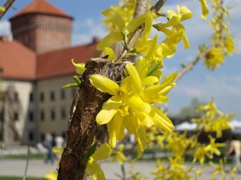 Keywords: forsythia kraków poland wawel flowers spring plant nature yellow petals