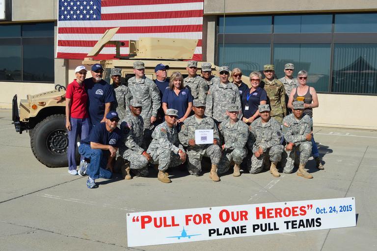 | Keywords: fort irwin fortirwin weed army community hospital weedarmycommunityhospital national training center nationaltrainingcenter wach ntc meddac col. jason wieman coljasonwieman csm jorge rodriguez csmjorgerodriguez united states army unitedstatesarmy soldiers uso ontario usoontario mojave troop support troopsupport resiliency center resiliencycenter army wellness center armywellnesscenter imcom health health benefits healthbenefits army triad armytriad preventive medicine preventivemedicine sport outdoor team sport ONTARIO, Calif. – Weed Army Community Hospital Soldiers (WACH) turned out for the Seventh Annual Pull for Our Heroes plane-pull competition October 23 at Ontario Airport Terminal Tarmac 1. The unusual plane-pull sporting event pits teams of 20 men and women against a 120,000 pound 727 plane. Competitors must quickly pull the plane 25 feet. The competition and event, which featured a live jazz band, speeches and exhibitor booths benefits the Bob Hope USO Ontario office located in Terminal 1 at Ontario International Airport. Personnel assigned to Fort Irwin in the Mojave desert as well as those assigned to the Marine Corps Logistic Base, Barstow, regularly fly into the Ontario Airport (though 180 miles from post, it is still the closest commercial airport available to Fort Irwin incoming personnel) and the USO office is a great assistance to traveling service members, family members and civilians on their way to the garrison. Photo courtesy of Kristen Ramirez, Bob Hope USO Ontario Airport (Released). To learn more about the people and facilities of the Weed Army Community Hospital and the National Training Center at Fort Irwin visit the new WACH website at www.irwin.amedd.army.mil For more information about the USO office at Ontario Airport visit www.bobhopeuso.org/our-locations/ontario-airport-uso.html ONTARIO, Calif. – Weed Army Community Hospital Soldiers (WACH) turned out for the Seventh Annual Pull for Our Heroes plane-pull competition October 23 at Ontario Airport Terminal Tarmac 1. The unusual plane-pull sporting event pits teams of 20 men and women against a 120,000 pound 727 plane. Competitors must quickly pull the plane 25 feet. The competition and event, which featured a live jazz band, speeches and exhibitor booths benefits the Bob Hope USO Ontario office located in Terminal 1 at Ontario International Airport. Personnel assigned to Fort Irwin in the Mojave desert as well as those assigned to the Marine Corps Logistic Base, Barstow, regularly fly into the Ontario Airport (though 180 miles from post, it is still the closest commercial airport available to Fort Irwin incoming personnel) and the USO office is a great assistance to traveling service members, family members and civilians on their way to the garrison. Photo courtesy of Kristen Ramirez, Bob Hope USO Ontario Airport (Released). To learn more about the people and facilities of the Weed Army Community Hospital and the National Training Center at Fort Irwin visit the new WACH website at www.irwin.amedd.army.mil For more information about the USO office at Ontario Airport visit www.bobhopeuso.org/our-locations/ontario-airport-uso.html |