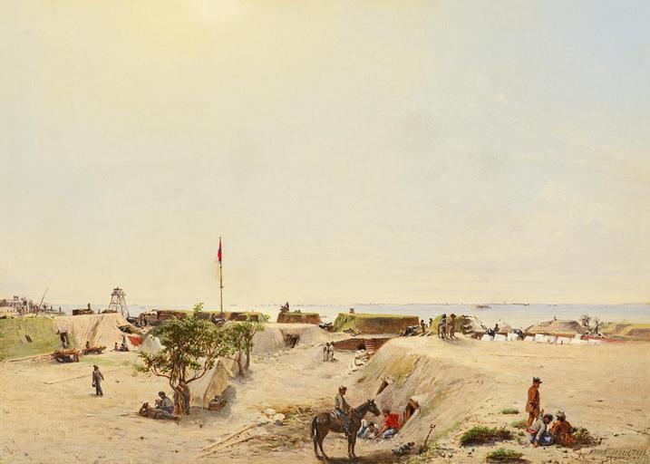 | Keywords: outdoor shore seaside landscape coast beach "Interior view of Fort Moultrie while the fortifications are being built. Shows the old Moultrie House, Battery Beauregard and Battery Marion. Lieutenant Martin is on a horse belonging to Col. Tabb of the 59th Va. Regt."  Conrad Wise Chapman, 1898  The American Civil War Museum, Richmond, Va "Interior view of Fort Moultrie while the fortifications are being built. Shows the old Moultrie House, Battery Beauregard and Battery Marion. Lieutenant Martin is on a horse belonging to Col. Tabb of the 59th Va. Regt."  Conrad Wise Chapman, 1898  The American Civil War Museum, Richmond, Va  |