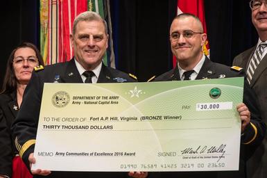 | Keywords: chief of staff of the u.s. army chiefofstaffoftheusarmy gen. mark a. milley genmarkamilley army communities of excellence awards ceremony. armycommunitiesofexcellenceawardsceremony fort a. p. hill fortaphill acoe people groupshot Fort A.P. Hill was recognized with the Bronze award during the annual Army Communities of Excellence Awards ceremony held at the Pentagon, May 24. Fort A.P. Hill was recognized with the Bronze award during the annual Army Communities of Excellence Awards ceremony held at the Pentagon, May 24. |
