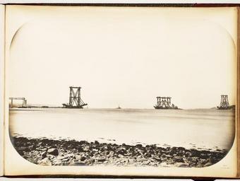 | Keywords: Forth Bridge - General view taken from Dalmeny Park at water level.jpg of same it will be seen that the distance from centre of vertical column to the point on the bottom member at which the first tie strikes it is 180 feet in a horizontal line Though owing to their dimensions and general design these 12 feet tubes were able to support themselves with facility it was considered expedient to limit the unsupported length not only on account of its own weight and the cage it carried but because such provision would forward subsequent operations The most satisfactory plan that could be adopted for this purpose was to bring into use some of the permanent work already fixed and with this end in view the method employed was as follows - At a point in the vertical columns some few feet above rail level were bolted plates to which was attached a chain comprised of links which had once played a leading part in the construction of old Hammersmith Bridge stretching to the extreme end of bottom member and screwed up tight This chain however was not as commonly supposed intended to take any considerable strain but merely to prevent any sag in the tie subsequently constructed Accurately speaking therefore it was a temporary tie to support a permanent one during construction that actually devised to take the weight off the tube being composed of a portion of top member for Bay 3 Transcription from Philip Phillips 'The Forth Railway Bridge' Edinburgh 1890 Size cm 43 58 exhibition history Institution National Library of Scotland photograph object history PD-old-70-1923 Creator Philip Phillips RB l 229 74570358 Forth Bridge - General view taken from Dalmeny Park at water level Uploaded with GWToolset Forth Bridge - General view taken from Dalmeny Park at water level http //deriv nls uk/56YK98Q/7443/74438678 2 jpg Construction of the Forth Bridge Images uploaded as part of NLS-WMUK collaboration |