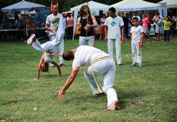| Keywords: europe france south france southfrance süd frankreich südfrankreich languedoc roussillon languedocroussillon midi montpellier jacou hérault forum des associations forumdesassociations sports art martial artmartial capoeira danse musique adresse agilité grâce souplesse fit forme extérieur outdoor grass plant Démonstration de capoeira, au parc de Bocaud à Jacou. Je ne manque pas de remarquer l'élégance et la grâce de ces sportifs, que je n'avais encore jamais vu. Curieux, cette ceinture de couleur ; une paire de cordes terminées par un bouquet de franges. Démonstration de capoeira, au parc de Bocaud à Jacou. Je ne manque pas de remarquer l'élégance et la grâce de ces sportifs, que je n'avais encore jamais vu. Curieux, cette ceinture de couleur ; une paire de cordes terminées par un bouquet de franges. |