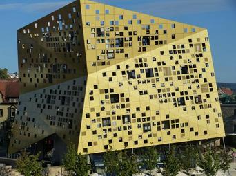 Keywords: forum gold and silver home building swabian gmünd state garden show remsterrassen art art building architecture cubic cube holes country garden festival site square gold golden