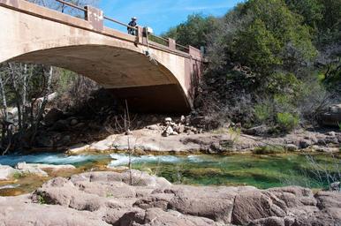 | Keywords: arizona coconino national forest coconinonationalforest forest service forestservice fossil creek fossilcreek fossil creek bridge fossilcreekbridge red rock ranger district redrockrangerdistrict tonto national forest tontonationalforest usfs bridge canyon creek forest outdoors riparian water camp verde campverde united states unitedstates outdoor Fossil Creek seems to appear out of nowhere, gushing 20,000 gallons a minute out of a series of springs at the bottom of a 1,600 foot deep canyon. Over the years these calcium laden waters have laid down huge deposits of a type of limestone called travertine. That rock-like substance encases whatever happens to fall into the streambed, forming the fossils for which the area is named. Fossil Creek is one of two "Wild and Scenic" rivers in Arizona. This special designation was achieved when the Irving power plant was decommissioned, and removal of flume and dam on the creek allowed this magnificent creek to once again flow freely through Arizona's arid landscape. Most people come to Fossil Creek to sunbathe, wade, hike and birdwatch. It's also a great place to take photographs. The lushness of the riparian area strikes a sharp contrast to the brittle desert that surrounds it. Increasing popularity has led to the Coconino and Tonto National Forests to implement a parking permit reservation system in 2016. Reserved parking permits give visitors the peace of mind knowing they'll have a spot waiting for them in this remote location. Many visitors drive two or three hours to get to the creek. The final descent to the creek at the bottom of a canyon is on an extremely rough, rocky jeep road. Photo by Deborah Lee Soltesz, March 2, 2016. Credit: USFS Coconino National Forest. Learn more about visiting Fossil Creek, Fossil Springs Wilderness, and the Coconino National Forest. Fossil Creek seems to appear out of nowhere, gushing 20,000 gallons a minute out of a series of springs at the bottom of a 1,600 foot deep canyon. Over the years these calcium laden waters have laid down huge deposits of a type of limestone called travertine. That rock-like substance encases whatever happens to fall into the streambed, forming the fossils for which the area is named. Fossil Creek is one of two "Wild and Scenic" rivers in Arizona. This special designation was achieved when the Irving power plant was decommissioned, and removal of flume and dam on the creek allowed this magnificent creek to once again flow freely through Arizona's arid landscape. Most people come to Fossil Creek to sunbathe, wade, hike and birdwatch. It's also a great place to take photographs. The lushness of the riparian area strikes a sharp contrast to the brittle desert that surrounds it. Increasing popularity has led to the Coconino and Tonto National Forests to implement a parking permit reservation system in 2016. Reserved parking permits give visitors the peace of mind knowing they'll have a spot waiting for them in this remote location. Many visitors drive two or three hours to get to the creek. The final descent to the creek at the bottom of a canyon is on an extremely rough, rocky jeep road. Photo by Deborah Lee Soltesz, March 2, 2016. Credit: USFS Coconino National Forest. Learn more about visiting Fossil Creek, Fossil Springs Wilderness, and the Coconino National Forest. |