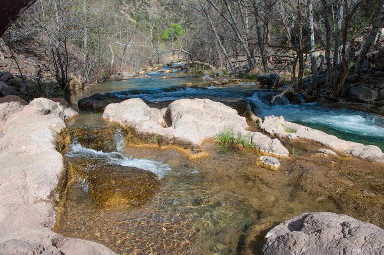 | Keywords: arizona coconino national forest coconinonationalforest forest service forestservice fossil creek fossilcreek red rock ranger district redrockrangerdistrict tonto national forest tontonationalforest usfs canyon creek forest outdoors riparian water camp verde campverde united states unitedstates outdoor Fossil Creek seems to appear out of nowhere, gushing 20,000 gallons a minute out of a series of springs at the bottom of a 1,600 foot deep canyon. Over the years these calcium laden waters have laid down huge deposits of a type of limestone called travertine. That rock-like substance encases whatever happens to fall into the streambed, forming the fossils for which the area is named. Fossil Creek is one of two "Wild and Scenic" rivers in Arizona. This special designation was achieved when the Irving power plant was decommissioned, and removal of flume and dam on the creek allowed this magnificent creek to once again flow freely through Arizona's arid landscape. Most people come to Fossil Creek to sunbathe, wade, hike and birdwatch. It's also a great place to take photographs. The lushness of the riparian area strikes a sharp contrast to the brittle desert that surrounds it. Increasing popularity has led to the Coconino and Tonto National Forests to implement a parking permit reservation system in 2016. Reserved parking permits give visitors the peace of mind knowing they'll have a spot waiting for them in this remote location. Many visitors drive two or three hours to get to the creek. The final descent to the creek at the bottom of a canyon is on an extremely rough, rocky jeep road. Photo by Deborah Lee Soltesz, March 2, 2016. Credit: USFS Coconino National Forest. Learn more about visiting Fossil Creek, Fossil Springs Wilderness, and the Coconino National Forest. Fossil Creek seems to appear out of nowhere, gushing 20,000 gallons a minute out of a series of springs at the bottom of a 1,600 foot deep canyon. Over the years these calcium laden waters have laid down huge deposits of a type of limestone called travertine. That rock-like substance encases whatever happens to fall into the streambed, forming the fossils for which the area is named. Fossil Creek is one of two "Wild and Scenic" rivers in Arizona. This special designation was achieved when the Irving power plant was decommissioned, and removal of flume and dam on the creek allowed this magnificent creek to once again flow freely through Arizona's arid landscape. Most people come to Fossil Creek to sunbathe, wade, hike and birdwatch. It's also a great place to take photographs. The lushness of the riparian area strikes a sharp contrast to the brittle desert that surrounds it. Increasing popularity has led to the Coconino and Tonto National Forests to implement a parking permit reservation system in 2016. Reserved parking permits give visitors the peace of mind knowing they'll have a spot waiting for them in this remote location. Many visitors drive two or three hours to get to the creek. The final descent to the creek at the bottom of a canyon is on an extremely rough, rocky jeep road. Photo by Deborah Lee Soltesz, March 2, 2016. Credit: USFS Coconino National Forest. Learn more about visiting Fossil Creek, Fossil Springs Wilderness, and the Coconino National Forest. |