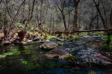 | Keywords: arizona coconino national forest coconinonationalforest forest service forestservice fossil creek fossilcreek fossil springs fossilsprings fossil springs wilderness fossilspringswilderness hdr national forest nationalforest red rock ranger district redrockrangerdistrict tonto national forest tontonationalforest backpacking canyon desert forest hiking outdoors spring springtime trail wilderness strawberry united states unitedstates Fossil Springs begin approximately three quarters of a mile above the old Fossil Creek Dam. A series of springs gush 20,000 gallons a minute year-round at the bottom of a 1,600 foot deep canyon, creating a lush riparian oasis rich with life, and feeding Fossil Creek Wild and Scenic River. Over the years these calcium laden waters have laid down huge deposits of a type of limestone called travertine, creating deep pools for miles along the creek. The Wilderness and surrounding area are on the Tonto and Coconino National Forests, and are managed by the Coconino National Forest. During the spring-summer season, camping is prohibited in Fossil Springs Wilderness and the surrounding area, and a reserved parking permit is required to park at the trailheads that access the Wilderness. See Fossil Springs Wilderness and Fossil Creek on the USFS Coconino National Forest website for maps, regulations, permit reservations, and other details. Photo by Deborah Lee Soltesz. Source: USFS Coconino National Forest. Fossil Springs begin approximately three quarters of a mile above the old Fossil Creek Dam. A series of springs gush 20,000 gallons a minute year-round at the bottom of a 1,600 foot deep canyon, creating a lush riparian oasis rich with life, and feeding Fossil Creek Wild and Scenic River. Over the years these calcium laden waters have laid down huge deposits of a type of limestone called travertine, creating deep pools for miles along the creek. The Wilderness and surrounding area are on the Tonto and Coconino National Forests, and are managed by the Coconino National Forest. During the spring-summer season, camping is prohibited in Fossil Springs Wilderness and the surrounding area, and a reserved parking permit is required to park at the trailheads that access the Wilderness. See Fossil Springs Wilderness and Fossil Creek on the USFS Coconino National Forest website for maps, regulations, permit reservations, and other details. Photo by Deborah Lee Soltesz. Source: USFS Coconino National Forest. |