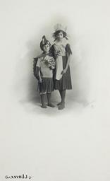 | Keywords: Fotografier från julaftnar - Hallwylska museet - 105368.tif LSH artwork sv FOTOGRAFIER m m FRÅN JULAFTNAR firade med familjen von Geijer 1 Från år 1913 på Wegeholm Fotografi Av Margit och Erik von Geijer som småbarn I högra nedre hörnet signerat Emil Bruno Hälsingborg Höjd 19 cm; bredd 11 cm Gåva till Wilhelmina von Hallwyl januari eller februari 1914 från hennes dotter Irma 2 Från år 1914 på Wegeholm Julgransflagga svensk Av silkespapper med stång av ståltråd Längs korsets horisontala del med svart bläck skrivet Hopp och Trohet Jul 1914 Längd 13 cm bredd 7 cm Stång längd 12 cm Gåva till Walther von Hallwyl Julaftonen 1914 från hans dotterdotter och dotterson Margit och Erik von Geijer Julgransflagga svensk och två fotografier Flagga Som den nyss beskrivna Fotografier På kort 1 Margit von Geijer som Svea stående med utslaget hår i fotsid vit dräkt med slöja pannband mörkt axelband och sandaler i högra handen Sveriges flagga med stången stödd mot marken i vänstra handen riksskölden med Lilla riksvapnet Tre kronor På kort 2 Erik von Geijer som tomte På båda i högra nedre hörnet signerat Emil Bruno Hälsingborg Kort 1 höjd 17 5 cm bredd 7 5 cm Kort 2 höjd 17 7 cm bredd 7 5 cm Gåva till Wilhelmina von Hallwyl Julaftonen 1914 från hennes dotterdotter och dotterson Margit och Erik von Geijer För beskrivning av julfirandet på Wegeholm se detta inv nummer i katalogverket Flaggorna inköpta av Irma von Geijer hos en handlare i Hälsingborg Fotografierna tagna Januari 1915 hos fotografen Emil Bruno Helsingborg 3 Från år 1915 på Wegeholm Solros Helianthus Av silkespapper och sammet med stjälk av ståltråd Blomkorg av gult kräpperat papper samt brun sammet stjälken lindad med grönt papper med foderblad och tre stjälkblad av dylikt papper Stjälk längd 31 cm Blomma diameter 14 cm Gåva till Walther von Hallwyl Julaftonen 1915 från hans dotterdotter och dotterson Margit och Erik von Geijer Solros Helianthus och två fotografier Solros Som den nyss beskrivna Fotografier På kort 1 Margit och Erik von Geijer stående hand i hand; båda klädda till änglar I högra nedre hörnet signerat Emil Bruno Hälsingborg Höjd 11 8 cm bredd 16 7 cm På kort 2 Samma barn stående i de s k arkaderna framför en dörr på Wegeholms borg samt hållande i dragstången till en blomstersmyckad liten vagn; båda klädda som på kort 1 Gåva till Wilhelmina von Hallwyl f Kempe julaftonen 1915 från Margit och Erik Geijer För detaljer om julfirandet se detta inv nr i katalogverket Fotografierna tagna Februari 1916 av fotografen Emil Bruno Helsingborg 4 Från år 1916 på Wegeholm Docka Lockigt ljusgult hår blåa ögon och röda läppar; clownkostym med bred krage och toppig mössa; på kostymen stora blåa rosetter av silkespapper Längd utan mössa 16 5 cm Mössa höjd 3 8 cm Gåva till Walther von Hallwyl julaftonen 1916 från Margit och Erik von Geijer Docka och fotografi Docka Som den nyss beskrivna Fotografi Margit och Erik von Geijer som Pierrette och Pierrot I högra nedre hörnet signerat Emil Bruno Hälsingborg Höjd 17 9 cm Bredd 12 4 cm Gåva till Wilhelmina von Hallwyl f Kempe Julaftonen 1916 från Margit och Erik von Geijer För detaljer om julfirandet se detta inv nr i katalogverket 5 Från år 1917 i Hamngatan 4 Stockholm Stjärna med spira Stjärna av guldpapper spira av trä Längd 34 5 cm Stjärna diameter 12 cm Spira längd 25 cm Gåva till Walther von Hallwyl Julaftonen 1917 från Margit och Erik von Geijer För detaljer om julfirandet se detta inventarienummer i katalogverket Fotografien tagen Februari 1918 av fotografen Herm Hamnqvist Atelier Bruno Södra Storgatan 3 Helsingborg 6 Från år 1918 i Hamngatan 4 Stockholm Penséer två stycken Av vitt s k engelskt skinn bomullssatin med stjälk av ståltråd Pressade samt handmålade i färger den ena med vit och den andra med gul mitt; stjälkarna gröna lindade med tyg som blommorna vardera med ett grönt stjälkblad Längd omkring 18 cm Gåva till Walther von Hallwyl julaftonen 1918 från Margit och Erik von Geijer Penséer två stycken och fotografi Penséer Som de nyss beskrivna Fotografi Margit och Erik von Geijer stående klädda till penséer Till höger om bilderna signerat Ferd Flodin -19 Höjd 22 8 cm Bredd 14 5 cm Gåva till Wilhelmina von Hallwyl Julaftonen 1918 från Margit och Erik von Geijer Penséerna inköpta av Irma von Geijer hos en handlare i Helsingborg Fotografien tagen 28 December 1918 av fotografen Ferd Flodin Hamngatan 3 A Stockholm 7 Från år 1919 i Hamngatan 4 Stockholm Snöboll Av vit bomullsvadd Oregelbundet klotrund utanpå beströdd med frostliknande silverglitter samt utan snöre Genomskärning omkring 4 cm Gåva till Walther von Hallwyl Julaftonen 1919 från Margit och Erik von Geijer Snöboll och fotografi Snöboll Som den nyss beskrivna Fotografi Margit och Erik von Geijer stående vända halvt åt vänster Den förstnämnda till höger båda i stor rund mössa och lång kappa av vadd med glitter samt vita strumpor; framför figurerna två stora snöbollar I högra nedre hörnet signerat Brink Foto Höjd 16 6 cm Bredd 11 2 cm Gåva till Wilhelmina von Hallwyl f Kempe julaftonen 1919 från Margit Johanna och Erik von Geijer För detaljer om julfirandet se detta inv nr i katalogverket Snöbollarna inköpta av Irma von Geijer i Buttericks Mönsteraffär Stockholm Fotografien tagen Januari 1920 av fotografen Gustaf Brink Ängelholm 8 Från år 1920 i Hamngatan 4 Stockholm Skogstomte I form av en brandgul flugsvamp Av tyg bommullsvadd och trä m m Höjd 10 8 cm Hatt diameter 9 1 cm Fotplatta diameter 5 9 cm Gåva till Walther von Hallwyl Julaftonen 1920 från Margit och Erik von Geijer Skogstomte och fotografi Skogstomte Som den nyss beskrivna men röd med vita plättar på svamphatten på kortet vid högra änden målat ett paket under en drypande lacktång Fotografi Margit och Erik von Geijer samt Elionore Joseph alla stående Erik prins i ljus drä