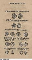 Keywords: Fotothek df tg 0001277 Münzwesen ^ Geldwesen ^ Münze ^ Groschen ^ Pfennig ^ Dreier.jpg Scan Deutsche Fotothek df_tg_0001277 color 2007 MIK-Center Berlin GmbH 88961277 ohne Seitenangabe Dresden Groschen Sachsen-Lauenburg Pfennig Weimar Mainz-Erfurt Wittgenstein Brandenburg Dreier Braunschweig Mecklenburg Papier Holzschnitt 25 4 x 12 1 cm Münzwesen Geldwesen Münze Groschen Pfennig Dreier ppn264780299 1684 Druck Deutsche Fotothek gefördert von der Deutschen Forschungsgemeinschaft Projekt Technikgeschichte 16 /17 Jh Verwalter Dresden Sächsische Landesbibliothek - Staats- und Universitätsbibliothek Dresden Hist Sax M26 Herstellung Bergen Verleger Drucker aus Buch Abdruck und Verzeichnüs derer Müntz-Sorten welche Welche Vermöge Chur-Fürstl Sächß gnädigsten Mandats de dato Torgau den 8 Decembr anni curr theils vor voll theils umb ein gewisses wie einer ieden Sorte beygesetzet voritzo in Handel und Wandel angenommen werden sollen II Die sub No II nachgesetzten Sorten ob dieselben gleich guten theils vormahls schon gantz verruffen gewesen SLUB Hist Sax M26 Fotothek-License PD-old-100 Scans Coins of the Holy Roman Empire Abdruck und Verzeichnüs derer Müntz-Sorten 1684 Old Manuscripts from the Deutsche Fotothek Coins