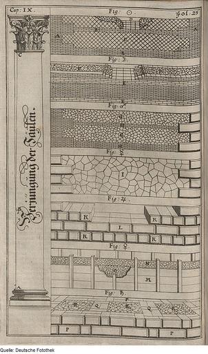 | Keywords: Fotothek df tg 0001616 Architektur ^ Bauwesen ^ Baustoff ^ Mauerwerk.jpg Scan Deutsche Fotothek df_tg_0001616 color 2007 MIK-Center Berlin GmbH 88961616 Kap 9 Bl 25 Nürnberg Verschiedene Arten der Errichtung von Mauerwerk Papier Kupferstich 31 1 x 18 5 cm Architektur Bauwesen Baustoff Mauerwerk ppn26553190X 1698 Druck Deutsche Fotothek gefördert von der Deutschen Forschungsgemeinschaft Projekt Technikgeschichte 16 /17 Jh Verwalter Dresden Sächsische Landesbibliothek - Staats- und Universitätsbibliothek Dresden Archit 188 Herstellung Herstellung Endter Verleger aus Palladio Andreas Böckler Georg Andreas Hrsg Buch Die Baumeisterin Pallas Oder Der in Teutschland entstandene Palladius das ist Des vortrefflich-Italiänischen Baumeisters Andreae Palladii Zwey Bücher Von der Baukunst Deren Erstes I Von denen Materialien die zu dem Bauen insgemein gehören Das Zweyte tractiret I Von denen Zierrathen der gemeinen Gebäue Das IX Capitel Von den Manieren und Geschlechten der Mauren SLUB Archit 188 Fotothek-License PD-old-100 Scans Old Manuscripts from the Deutsche Fotothek |