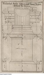 | Keywords: Fotothek df tg 0001623 Architektur ^ Bauwesen ^ Säule ^ Attika ^ dorische Ordnung.jpg Scan Deutsche Fotothek df_tg_0001623 color 2007 MIK-Center Berlin GmbH 88961623 Kap 15 Fig 7 Bl 35 Nürnberg Piedestal Basis Attika und zwei Gesimsbögen der Säule dorischer Ordnung Papier Kupferstich 31 9 x 18 8 cm Architektur Bauwesen Säule Attika dorische Ordnung ppn26553190X 1698 Druck Deutsche Fotothek gefördert von der Deutschen Forschungsgemeinschaft Projekt Technikgeschichte 16 /17 Jh Verwalter Dresden Sächsische Landesbibliothek - Staats- und Universitätsbibliothek Dresden Archit 188 Herstellung Herstellung Endter Verleger aus Palladio Andreas Böckler Georg Andreas Hrsg Buch Die Baumeisterin Pallas Oder Der in Teutschland entstandene Palladius das ist Des vortrefflich-Italiänischen Baumeisters Andreae Palladii Zwey Bücher Von der Baukunst Deren Erstes I Von denen Materialien die zu dem Bauen insgemein gehören Das Zweyte tractiret I Von denen Zierrathen der gemeinen Gebäue Das XV Capitel Von der Ordine Dorico SLUB Archit 188 Fotothek-License PD-old-100 Scans Old Manuscripts from the Deutsche Fotothek |