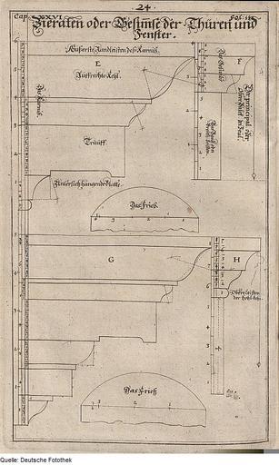 | Keywords: Fotothek df tg 0001640 Architektur ^ Bauwesen ^ Tür ^ Fenster ^ Gesims.jpg Scan Deutsche Fotothek df_tg_0001640 color 2007 MIK-Center Berlin GmbH 88961640 Kap 26 Fig 24 Bl 55 Nürnberg Zierrat oder Gesimse der Türen und Fenster Papier Kupferstich 31 x 19 cm Architektur Bauwesen Tür Fenster Gesims ppn26553190X 1698 Druck Deutsche Fotothek gefördert von der Deutschen Forschungsgemeinschaft Projekt Technikgeschichte 16 /17 Jh Verwalter Dresden Sächsische Landesbibliothek - Staats- und Universitätsbibliothek Dresden Archit 188 Herstellung Herstellung Endter Verleger aus Palladio Andreas Böckler Georg Andreas Hrsg Buch Die Baumeisterin Pallas Oder Der in Teutschland entstandene Palladius das ist Des vortrefflich-Italiänischen Baumeisters Andreae Palladii Zwey Bücher Von der Baukunst Deren Erstes I Von denen Materialien die zu dem Bauen insgemein gehören Das Zweyte tractiret I Von denen Zierrathen der gemeinen Gebäue Das XXVI Capitel Von den Zierrathen der Thüren und Fenster SLUB Archit 188 Fotothek-License PD-old-100 Scans Old Manuscripts from the Deutsche Fotothek |