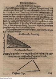 | Keywords: Fotothek df tg 0001716 Geometrie ^ Vermessung ^ Vermessungsinstrument ^ Messrute ^ Rute.jpg Scan Deutsche Fotothek df_tg_0001716 color 2007 MIK-Center Berlin GmbH 88961716 11v Frankfurt Main Vermessen dreieckiger Felder in Ruten mit Hilfe einer Messrute Papier Holzschnitt 3 1 x 5 3 cm 2 5 4 9 cm Geometrie Vermessung Vermessungsinstrument Messrute Rute ppn265655439 1616 Druck Deutsche Fotothek gefördert von der Deutschen Forschungsgemeinschaft Projekt Technikgeschichte 16 /17 Jh Verwalter Dresden Sächsische Landesbibliothek - Staats- und Universitätsbibliothek Dresden Geodaes 38 Herstellung Steinmeyer Verleger aus Koebel Jacob Buch Geometrey Von künstlichem Feldmessen vnnd Absehen allerhandt Hohe Fleche Ebne Weite vnnd Breite Als Thürn Kirchen Bäw Bäum Felder unnd Ecker Von messen und theylen deß Erdtrichs/ Ecker/ unnd Felder/ in was form und gestalt die seyn Durch Jacob Köbel beschrieben Es seynd Felder/ einer gestalt/ eines ungleichen Triangels/ also daß kein seit als lang ist als die ander/ werden in nachfolgendem Bericht gemessen Die sechste Regel Etlich Ecker haben drey ungleiche seiten/ oder aber zwo gleiche seiten mit einer scharffen Spitzen/ als die nachgesetzte Figur außweiset Die sibende Regel SLUB Geodaes 38 Fotothek-License PD-old-100 Scans Geometrey Köbel Old Manuscripts from the Deutsche Fotothek |