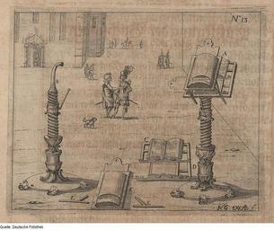 | Keywords: Fotothek df tg 0001798 Mechanik ^ Pult ^ Spiegelpult.jpg Scan Deutsche Fotothek df_tg_0001798 color 2007 MIK-Center Berlin GmbH 88961798 Abbildung Nr 13 Leipzig Spiegelpult Papier Kupferstich 11 8 x 14 6 cm Mechanik Pult Spiegelpult ppn265792126 1614 Druck Deutsche Fotothek gefördert von der Deutschen Forschungsgemeinschaft Projekt Technikgeschichte 16 /17 Jh Verwalter Dresden Sächsische Landesbibliothek - Staats- und Universitätsbibliothek Dresden 40 8 5065-6 Herstellung Herstellung Grosse Henning Verleger aus Megiser Hieronymus Buch Theatri machinarum Theil Darinen allerhand Lustig und schöne Machinae Als noch etliche Kunste das Wasser damit züheben Morast auszudruckuen die Erde aus Gräben züfordern Pfael und Fündamend in Meer und Flüssen einzüschlagen Brücken uber Ströme und Gräben zübawen Aüch andre Künstliche wercke mehr Als New erfündene Büch uud Spiegel Pütte Braten wenter etc Eine neue art eines Spiegelpults/ zu lbehülff des Gesichts/ und vergrössung der Schrifft SLUB 40 8 5065-6 Fotothek-License PD-old-100 Scans Old Manuscripts from the Deutsche Fotothek Lecterns in art 1614 |