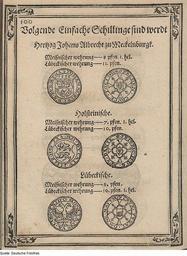 | Keywords: Fotothek df tg 0002392 Geldwesen ^ Münzwesen ^ Münze ^ Schilling.jpg Scan Deutsche Fotothek df_tg_0002392 color 2007 MIK-Center Berlin GmbH 88962392 110 Leipzig Schilling des Herzogs Johann Albrecht von Mecklenburg; Schilling von Holstein; Schilling von Lübeck Papier Holzschnitt 17 7 x 13 cm Geldwesen Münzwesen Münze Schilling ppn266173098 1573 Druck Deutsche Fotothek gefördert von der Deutschen Forschungsgemeinschaft Projekt Technikgeschichte 16 /17 Jh Verwalter Dresden Sächsische Landesbibliothek - Staats- und Universitätsbibliothek Dresden Hist Sax M 191 misc 4 Herstellung Rhambau Johann Drucker Herstellung Stürmer Verleger aus Stürmer Wolf Buch Vortzeichnus und Gepräge der Groben und Kleinen Müntzsorten Welcher sich die Churfürsten Fürsten und Stende in dem Obern Sächssischen Krais vermöge des Heiligen Reichs Müntzordnung und darauff ervolgten Krais und Probationtägen vorglichen Darinne anfangs die Guten Taler so hinfüro geng und gebe sein sollen Und dann volgents auch die Groben und Kleinen geringen Valuirten Sorten zubefinden so auff den Bruch in die vorordente Wechssel geantwortet werden sollen Nachvolgende Taler/ so des Heiligen Reichs Müntzordnung ungemes/ und in der Prob nicht bestanden/ sind werdt wie uber ein jedern verzeichnet SLUB Hist Sax M 191 misc 4 Fotothek-License PD-old-100 Coins of the Holy Roman Empire Vortzeichnus und Gepräge der Großen und Kleinen Müntzsorten 1573 |