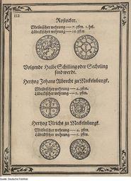 | Keywords: Fotothek df tg 0002394 Geldwesen ^ Münzwesen ^ Münze ^ Schilling ^ Sechsling.jpg Scan Deutsche Fotothek df_tg_0002394 color 2007 MIK-Center Berlin GmbH 88962394 112 Leipzig Schilling Sechsling von Rostock; Halber Schilling Sechsling von Herzog Johann Albrecht von Mecklenburg; Halber Schilling Sechsling von Herzog Ulrich von Mecklenburg Papier Holzschnitt 17 7 x 13 cm Geldwesen Münzwesen Münze Schilling Sechsling ppn266173098 1573 Druck Deutsche Fotothek gefördert von der Deutschen Forschungsgemeinschaft Projekt Technikgeschichte 16 /17 Jh Verwalter Dresden Sächsische Landesbibliothek - Staats- und Universitätsbibliothek Dresden Hist Sax M 191 misc 4 Herstellung Rhambau Johann Drucker Herstellung Stürmer Verleger aus Stürmer Wolf Buch Vortzeichnus und Gepräge der Groben und Kleinen Müntzsorten Welcher sich die Churfürsten Fürsten und Stende in dem Obern Sächssischen Krais vermöge des Heiligen Reichs Müntzordnung und darauff ervolgten Krais und Probationtägen vorglichen Darinne anfangs die Guten Taler so hinfüro geng und gebe sein sollen Und dann volgents auch die Groben und Kleinen geringen Valuirten Sorten zubefinden so auff den Bruch in die vorordente Wechssel geantwortet werden sollen Nachvolgende Taler/ so des Heiligen Reichs Müntzordnung ungemes/ und in der Prob nicht bestanden/ sind werdt wie uber ein jedern verzeichnet SLUB Hist Sax M 191 misc 4 Fotothek-License PD-old-100 Coins of the Holy Roman Empire Vortzeichnus und Gepräge der Großen und Kleinen Müntzsorten 1573 |