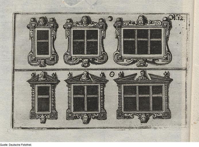 | Keywords: Fotothek df tg 0002974 Architektur ^ Fensterrahmen ^ Fenster ^ Ornament.jpg  Scan Deutsche Fotothek df_tg_0002974 color 2007 MIK-Center Berlin GmbH 88962974 zwischen S 30 und 31 Blatt Nr 12 Augsburg Fenstereinfassungen und Ornamente Papier Kupferstich 8 7 x 13 cm Architektur Fensterrahmen Fenster Ornament ppn266930085 1667 Druck Deutsche Fotothek gefördert von der Deutschen Forschungsgemeinschaft Projekt Technikgeschichte 16 /17 Jh Verwalter Dresden Sächsische Landesbibliothek - Staats- und Universitätsbibliothek Dresden Archit 595-8/9 misc 2 Herstellung Schultes Johann Drucker Herstellung Furttenbach Joseph der Jüngere Kupferstecher aus Furttenbach Joseph Buch Allgemeine deutsche Baukunst Garten-Pallästlins-Gebäw; Der Neundte Theil; in welchem gar umständlich zu vernehmen wie ein Lust- Sommer- oder Villa-Haus im freyen Feld dastehend einem Garten-Pallästlin zu vergleichen auch mancherley feinen Architectonischen mit geringen Unkosten in das Werck selbsten zustellenden albereit experimentirten liebreichen Zieraden köndte aufgebauet und alsdann zu Nutzen und Recreation möge gebraucht und gaudirt werden Von den Fenster-Gerichter Das Kupfferblat N 12 SLUB Archit 595-8/9 misc 2 Fotothek-License PD-old-100 Joseph Furttenbach d J Old Manuscripts from the Deutsche Fotothek |