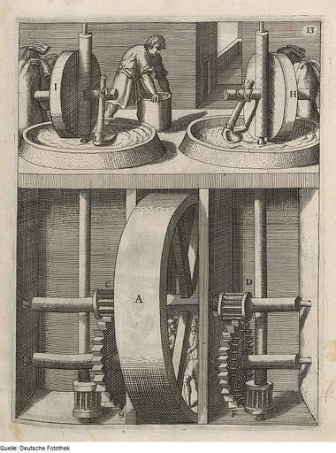 | Keywords: Fotothek df tg 0006604 Mechanik ^ Mühle ^ Mahlwerk ^ Tretmühle.jpg Scan Deutsche Fotothek df_tg_0006604 color 2008 MIK-Center Berlin GmbH 88966604 Abbildung Nr 13 Nürnberg Tretmühle zum Zerkleinern von Leinsamen Papier Kupferstich 26 x 19 5 cm Mechanik Mühle Mahlwerk Tretmühle ppn277649374 1661 Druck Deutsche Fotothek gefördert von der Deutschen Forschungsgemeinschaft Projekt Technikgeschichte 16 /17 Jh Verwalter Dresden Sächsische Landesbibliothek - Staats- und Universitätsbibliothek Dresden Mechan 35 misc 1 Herstellung Herstellung Fürst Paul Gerhard Christoph Verleger aus Böckler Georg Andreas Buch Theatrum Machinarum Novum Das ist Neu-Vermehrter Schauplatz der Mechanischen Künsten Handelt von Allerhand- Wasser- Wind- Roß- Gewicht- und Hand-Mühlen Wie dieselbige zu dem Frucht-Mahlen Papyr- Pulver- Stampff- Segen- Bohren- Walcken- Mangen und dergleichen anzuordnen Beneben Nützlichen Wasserkünsten Als da seynd Schöpff- Pomppen- Druck- Kugel- Kästen- Blaß- Wirbel- Schnecken Feuer-Sprützen und Bronnen-Wercken Damit das Wasser hoch zuheben zuleiten und fortführen auch andern Sachen so hierzu dienlich und nützlich zugebrauchen Abbildung 1 bis 153 SLUB Mechan 35 misc 1 Fotothek-License PD-old-100 Oil presses Linseed oil Theatrum Machinarum Novum |