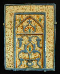 | Keywords: Foundation plaque MET 30-85-26.jpg Foundation plaque bearing the signature of Nusrat al-Din Muhammad about a building erected by Abu Sa'id of the Timurid Dynasty Molded earthenware lustre and cobalt decoration 1455 Iran Metropolitan Museum of Art MET 30 85 26 Plaque de fondation portant la signature de Nusrat al-Din Muhammad La plaque décrit l'érection d'un monument non identifié par le Timouride Abu Sa'id Pâte siliceuse moulée décor de lustre et rehauts de cobalt 1455 Iran Metropolitan Museum of Art MET 30 85 26 own Jastrow 2006 Tiles in Iran Arabic calligraphy in applied art Lustreware Iranian sculptures in the Metropolitan Museum of Art 1455 Timurid art |