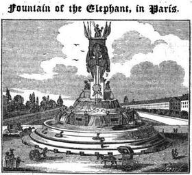 | Keywords: Fountain of the Elephant, in Paris.jpg Fountain of the Elephant in Paris fanciful view of an abandoned project Fontaine de l'Éléphant à Paris vue fantaisiste d'un projet abandonné The Mirror of Literature Amusement and Instruction n° 156 20 august 1825 1825 Matthew Urlwin Sears PD-Art Éléphant de la Bastille |