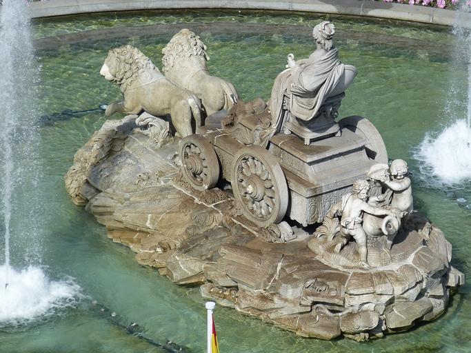 Keywords: fountain madrid spain space castile capital historically fig ornament outlook view monument lion dare coach