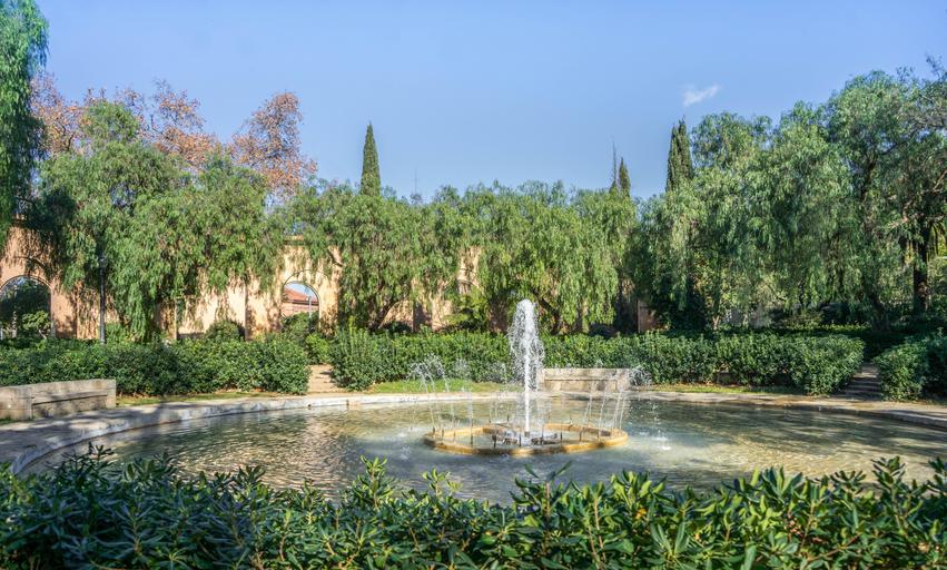Keywords: fountain park nature architecture outdoor barcelona spain garden outside tree sunny green