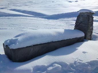 Keywords: fountain snow winter water graubünden