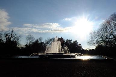 Keywords: fountain water back light park north park düsseldorf blue sky