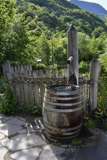 Keywords: fountain wooden barrels garden water tank decoration container water deco wood