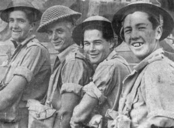 | Keywords: australian war memorial australianwarmemorial people groupshot blackandwhite monochrome black and white Unknown photographer Puckapunyal, Victoria 1952 Newspaper portrait of four Western Australian soldiers prior to embarkation for service in the Korean War. The four friends, all 18 or 19 years of age, had been in National Service together before deciding to volunteer for service in Korea. Left to right: 52109 Private Kevin Thomas 'Doc' Watson; 52106 Private Maurice Keith 'Snow' White; 52103 Private Arthur John Scurry; and 52101 Private Norman Percival (Norm) Fury. They first travelled to Japan for training at 1 Reinforcement Holding Unit, Hiro. The day before embarking for Korea, Private White drowned at Hiro, and was buried in the British Commonwealth War Graves Cemetery in Yokohama. Privates Watson, Scurry and Fury served in Korea with the 3rd Battalion, The Royal Australian Regiment Private Watson was wounded in action on 7 August 1952 and returned to Australia. Private Fury was wounded in action in September 1952 and also returned to Australia. Private Scurry continued his service and following a raid to capture a Chinese prisoner, he was reported assumed missing, presumed killed in action on 25 January 1953. Rights Info: No known copyright restrictions. This photograph is from the Australian War Memorial's collection www.awm.gov.au Persistent URL: http://cas.awm.gov.au/item/P09469.001 Unknown photographer Puckapunyal, Victoria 1952 Newspaper portrait of four Western Australian soldiers prior to embarkation for service in the Korean War. The four friends, all 18 or 19 years of age, had been in National Service together before deciding to volunteer for service in Korea. Left to right: 52109 Private Kevin Thomas 'Doc' Watson; 52106 Private Maurice Keith 'Snow' White; 52103 Private Arthur John Scurry; and 52101 Private Norman Percival (Norm) Fury. They first travelled to Japan for training at 1 Reinforcement Holding Unit, Hiro. The day before embarking for Korea, Private White drowned at Hiro, and was buried in the British Commonwealth War Graves Cemetery in Yokohama. Privates Watson, Scurry and Fury served in Korea with the 3rd Battalion, The Royal Australian Regiment Private Watson was wounded in action on 7 August 1952 and returned to Australia. Private Fury was wounded in action in September 1952 and also returned to Australia. Private Scurry continued his service and following a raid to capture a Chinese prisoner, he was reported assumed missing, presumed killed in action on 25 January 1953. Rights Info: No known copyright restrictions. This photograph is from the Australian War Memorial's collection www.awm.gov.au Persistent URL: http://cas.awm.gov.au/item/P09469.001 |