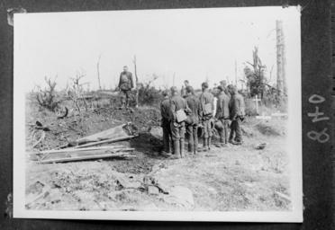 | Keywords: the great war thegreatwar great war greatwar world war i worldwari world war one worldwarone the first world war thefirstworldwar wwi ww1 war grave wargrave soldiers soldier blackandwhite photo border monochrome outdoor serene black and white Four photographs of New Zealand soldiers in France during World War I. Top left (H838) shows soldiers putting fresh vegetables into ration bags at 2M Stores of a Wellington Regiment, Gommecourt, 28th of July 1918. Top right (H837) shows soldiers receiving their pay, Gommecourt, 1918. Bottom left (H832) shows a formal group portrait of a New Zealand Rifle Brigade raiding party with their captured weapons which include 13 machine guns photographed on the 28th of July 1918. Bottom right (H840) shows soldiers lined up at the graves of soldiers from Otago who were killed in a raid. Photographed at Gommecourt on the 26th of July 1918. Photographed by an unknown photographer in July 1918. Quantity: 1 b&w original negative(s). Physical Description: Glass negative Finding Aids: Prints in Photograph Archive in War History Album PA1-f-094, print numbers H832, H837, H838, and H840.. Four photographs of New Zealand soldiers in France, World War 1. Royal New Zealand Returned and Services' Association :New Zealand official negatives, World War 1914-1918. Ref: 1/1-002074-G. Alexander Turnbull Library, Wellington, New Zealand. natlib.govt.nz/records/22782657 Four photographs of New Zealand soldiers in France during World War I. Top left (H838) shows soldiers putting fresh vegetables into ration bags at 2M Stores of a Wellington Regiment, Gommecourt, 28th of July 1918. Top right (H837) shows soldiers receiving their pay, Gommecourt, 1918. Bottom left (H832) shows a formal group portrait of a New Zealand Rifle Brigade raiding party with their captured weapons which include 13 machine guns photographed on the 28th of July 1918. Bottom right (H840) shows soldiers lined up at the graves of soldiers from Otago who were killed in a raid. Photographed at Gommecourt on the 26th of July 1918. Photographed by an unknown photographer in July 1918. Quantity: 1 b&w original negative(s). Physical Description: Glass negative Finding Aids: Prints in Photograph Archive in War History Album PA1-f-094, print numbers H832, H837, H838, and H840.. Four photographs of New Zealand soldiers in France, World War 1. Royal New Zealand Returned and Services' Association :New Zealand official negatives, World War 1914-1918. Ref: 1/1-002074-G. Alexander Turnbull Library, Wellington, New Zealand. natlib.govt.nz/records/22782657 |
