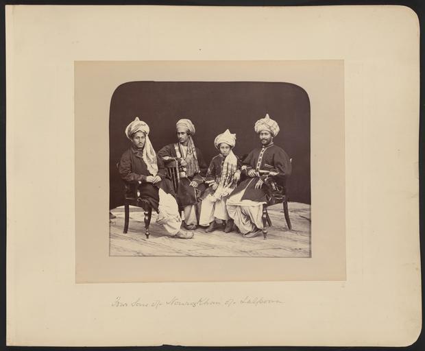 | Keywords: Four Sons of Nawrūz Khan of Lalpoora WDL11462.png Artwork ru Бе к Джон уме в 1900 году fr Burke John mort en 1900 en Burke John died 1900 zh 约翰·伯克,卒于 1900 年 pt Burke John falecido em 1900 ar بيرك، جون، توفي 1900 es Burke John fallecido en 1900 ru Четве о сыновей ав уз-хана из Лалпу а fr Quatre fils de Nawrūz Khan de Lalpoura en Four Sons of Nawrūz Khan of Lalpoora zh 拉尔普拉纳夫鲁兹汗的四个儿子 pt Quatro filhos de Nawrūz Khan de Lal Pura ar أربعة من أبناء نوروز خان اللالبوري ru Эта фотог афия четы ех сыновей ав уз-хана п авителя Лалпу ы Афганистан входит в альбом едких исто ических фотоснимков на кото ых изоб ажены люди и места связанные со Вто ой англо-афганской войной олодые люди одеты в т адиционную на ядную афганскую одежду и ост оконечные туфли называемые <em>paizaar</em> и обычно ук ашаемые вышивкой из золотых нитей Авто снимка Джон Бе к около 1843 1900 гг на оп еделенном этапе войны соп овождал Полевую а мию долины Пешава и был одним из пе вых фотог афов снимавших не только военнослужащих но и жителей Афганистана ав уз-хан был наиболее влиятельным вождем пуштунского племени мохмандов жившего в го ах на севе о-западе Пешава а и сопе ником эми а Абду ахман-хана Вто ая англо-афганская война началась в нояб е 1878 года когда Великоб итания опасаясь как ей казалось астущего влияния России в Афганистане вто глась в эту ст ану с те ито ии Б итанской Индии Пе вый этап войны закончился в мае 1879 года подписанием Гандамакского догово а позволившего афганцам сох анить внут енний суве енитет однако заставившего их уступить конт оль над внешней политикой своей ст аны б итанцам Военные действия возобновились в сентяб е 1879 года после антиб итанского восстания в Кабуле и окончательно заве шились в сентяб е 1880 года ешающей битвой за Кандага Данный альбом включает по т еты б итанских и афганских лиде ов и военнослужащих фотог афии п остых афганских людей изоб ажения б итанских военных лаге ей военных действий ст оений пейзажей к упных и небольших го одов Все изоб аженные на фотоснимках места находятся на те ито ии сов еменных Афганистана или Пакистана в то в емя бывших частью Б итанской Индии Около т ети п едставленных в альбоме фотог афий выполнены Бе ком д угая т еть сэ ом Бенджамином Симпсоном 1831 1923 гг а оставшаяся часть несколькими д угими фотог афами Авто ы некото ых фотоснимков неизвестны Возможно что составителем альбома был один из членов б итанского п авительства в Индии однако это п едположение не подтве ждено Каким об азом альбом попал в Библиотеку Конг есса неизвестно <br>Афганские войны; Афганцы; Одежда и платье; Г упповые по т еты; Головные убо ы; По т етные фотог афии; Пуштуны; Тю баны fr Ce cliché montrant quatre fils de Nawrūz Khan souverain de Lalpoura en Afghanistan est extrait d'un album de photographies historiques rares de personnalités et de sites associés à la seconde guerre anglo-afghane Les jeunes hommes portent de beaux habits traditionnels afghans et des chaussures pointues appelées <em>paizaar</em> souvent décorées de broderies au fil d'or Le photographe John Burke 1843 1900 env accompagna les troupes de la Force de campagne de la vallée de Peshawar pendant une partie de la guerre et il devint l'un des premiers photographes à prendre pour sujets le peuple d'Afghanistan plutôt que simplement le personnel militaire Le khan chef le plus important de la tribu pachtoune des Mohmands vivant dans les montagnes au nord-ouest de Peshawar était un rival de l'émir 'Abd al-Raḥmān Khān La seconde guerre anglo-afghane commença en novembre 1878 lorsque la Grande-Bretagne se sentant menacée par l'influence croissante des Russes en Afghanistan envahit le pays depuis l'Inde britannique La première phase de la guerre s'acheva en 1879 avec le traité de Gandamak qui permit aux Afghans de conserver leur souveraineté nationale mais les força à céder le contrôle de leur politique étrangère aux Britanniques Les combats reprirent en septembre 1879 à la suite d'un soulèvement antibritannique à Kaboul et ils se conclurent finalement en septembre 1880 avec la bataille décisive de Kandahar L'album contient des portraits de dirigeants e