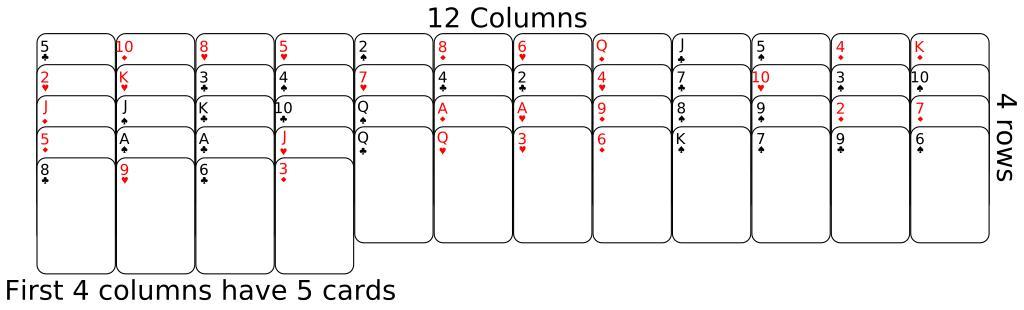 Keywords: Fourteen out deal.svg Tableau of the solitaire game Fourteen Out Uploader's own work using Inkscape software 2006-09-02 Tim Stellmach All rights released public domain to the fullest extent legally possible Check categories 2008 November 14 en wikipedia Fourteen_Out Card games |