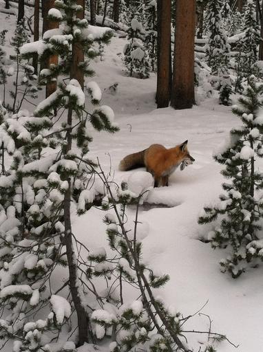 Keywords: fox hunting prey wildlife portrait snow winter forest wilderness predator food yellowstone national park wyoming usa outdoors trees