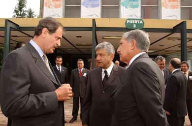 | Keywords: Fox Lopez Obrador Montiel.jpg Fotografía del Ex Presidente de México Vicente Fox; del Ex Jefe de Gobierno de la Ciudad de México Andrés Manuel López Obrador y del ex gobernador del Estado de México Arturo Montiel Picture of Mexican former president Vicente Fox Mexico City's Mayor Andrés Manuel López Obrador talking back and former Governor Arturo Montiel taken on June 11 2003 2003-06-11 http //fuente presidencia gob mx/archivos/1/2/5/9/art/fotos/mediano/woziro100 jpg Gustavo Benítez Presidencia de la República According to http //es wikipedia org/wiki/Wikipedia Autorizaci C3 B3n_ 28Presidencia_de_M C3 A9xico 29 all pictures in http //fuente presidencia gob mx are in the public domain PD-Layout 64px Public domain This file has been released into the public domain by the copyright holder http //fuente presidencia gob mx Noticias e Información de la Presidencia Mexico According to their e-mail all information published at http //fuente presidencia gob mx before april 2006 is placed in the public domain; there are no licenses nor copyrights http //fox presidencia gob mx/tecnologia/ content after april 2006 is CC-BY-NC-ND <hr style width 95 ; margin 0 5em auto; /> Technical note All content previously located at http //fuente presidencia gob mx is now located at http //fuente fox presidencia gob mx <hr style width 95 ; margin 0 5em auto; /> Esta imagen ha sido liberada al dominio público por el titular de sus derechos http //fuente presidencia gob mx Noticias e Información de la Presidencia México De acuerdo con su correo electrónico toda la información publicada en http //www fuente presidencia gob mx antes de abril del 2006 es de dominio y uso público por lo que no hay licencias ni derechos reservados http //fox presidencia gob mx/tecnologia/ contenido después de abril 2006 es CC-BY-NC-ND <hr style width 95 ; margin 0 5em auto; /> Nota técnica Todo el contenido que antes se encontraba en http //fuente presidencia gob mx se localiza ahora en http //fuente fox presidencia gob mx 64px right PD-Mexico-NIP PAGENAME Andrés Manuel López Obrador Vicente Fox Terminal Buenavista |