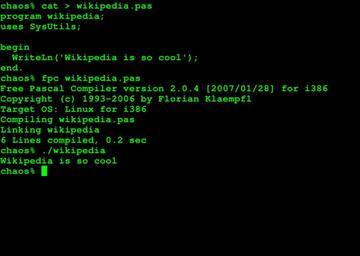 | Keywords: Fpc204zsh-wikicool.png Screenshot of a program being built using Free Pascal Compiler 2 0 4 and run using zsh on a Debian GNU/Linux system Сбо ка и запуск п ог аммы с помощью Free Pascal Compiler 2 0 4 с использованием zsh в Debian GNU/Linux own 2007-12-02 AVRS Image FPC_Command_Line PNG FPC 2 0 0 running on Cygwin without window decorations Screenshots of Linux software Free Pascal Text-only screenshots Z shell Screenshots with English Location not applicable Files by User AVRS/Screenshots Compiling and linking |